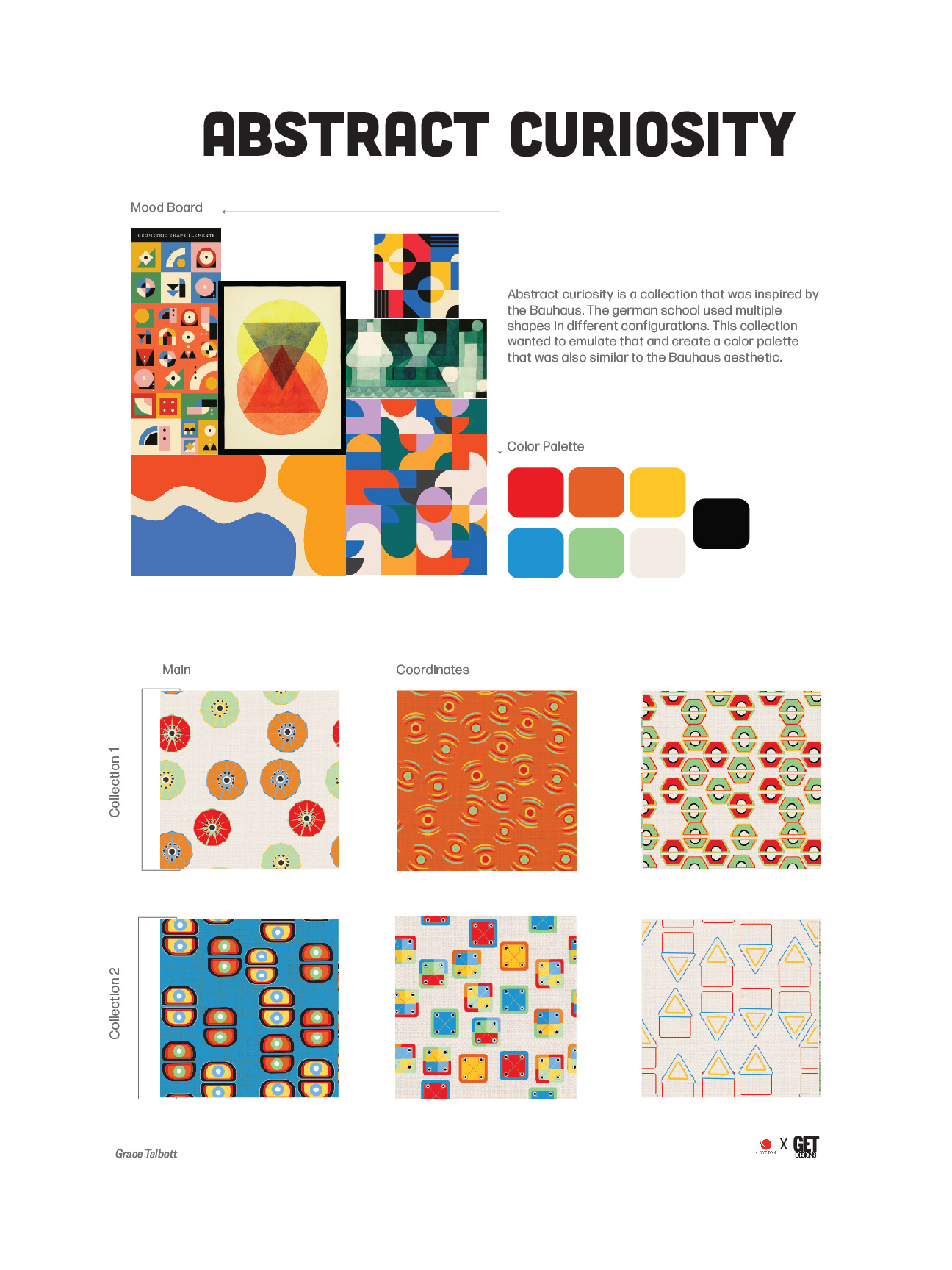 This was a collaboration between Crypton Mills and myself to create two capsules of pattern designs for different textiles. The collection is inspired by the Bauhaus aesthetic both in color and shapes.